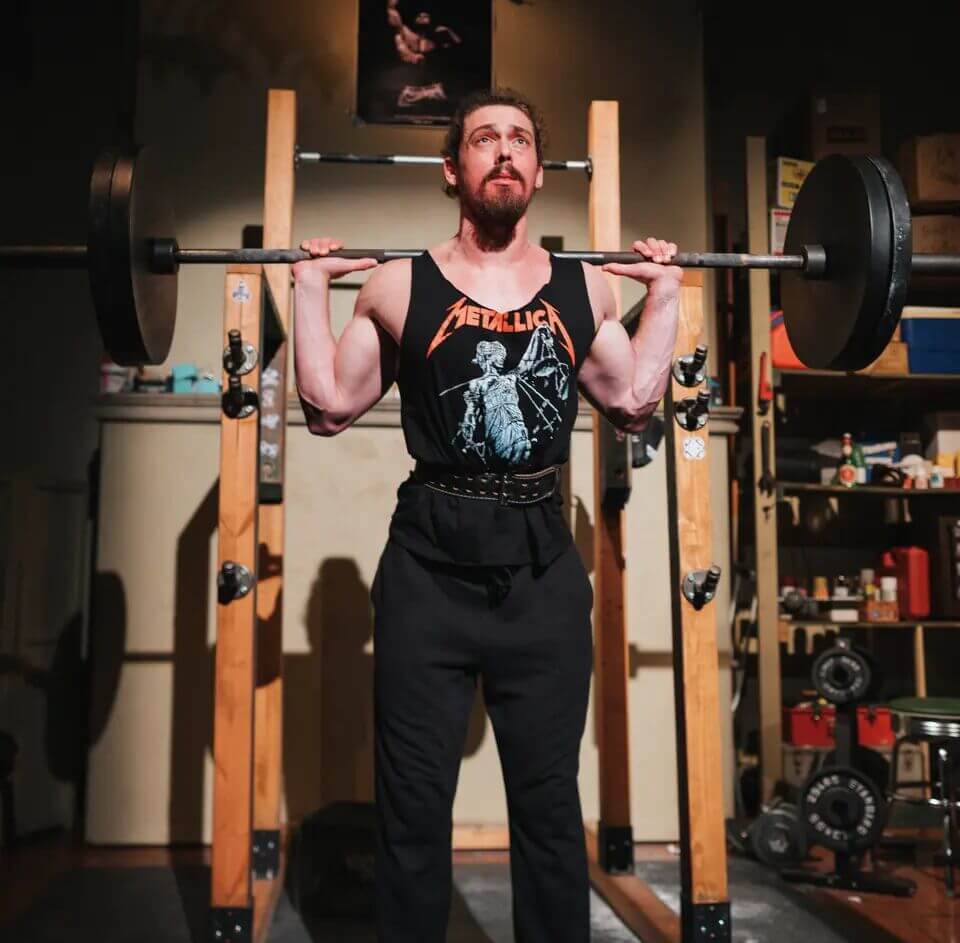 With just two actors, one set and a 90-minute runtime, the script is very producible, except for one hitch: The actor playing Nolan has to lift massive weights onstage, do countless pull-ups and squats and strike Atlas-like poses showing off boulder-like muscles.